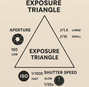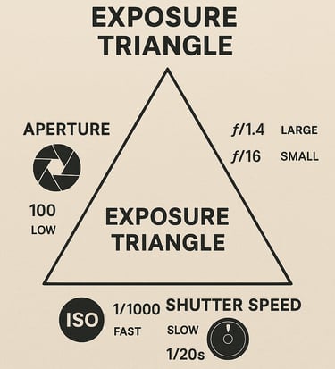 En fotografía, la exposición es la cantidad de luz que llega al sensor o película de tu cámara. Una foto bien expuesta no está ni demasiado oscura (subexpuesta) ni demasiado clara (sobreexpuesta). Para controlar esa luz usamos tres elementos que forman el triángulo de la exposición: apertura, velocidad de obturación e ISO.